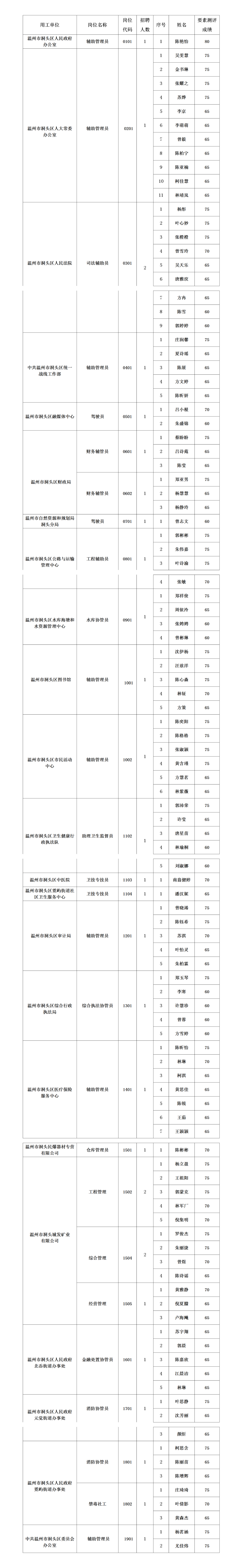 根据《2023年温州市洞头区机关事业单位(国企)第三期公开招聘编外用工公告》精神,现将入围面试人员名单公布如下: