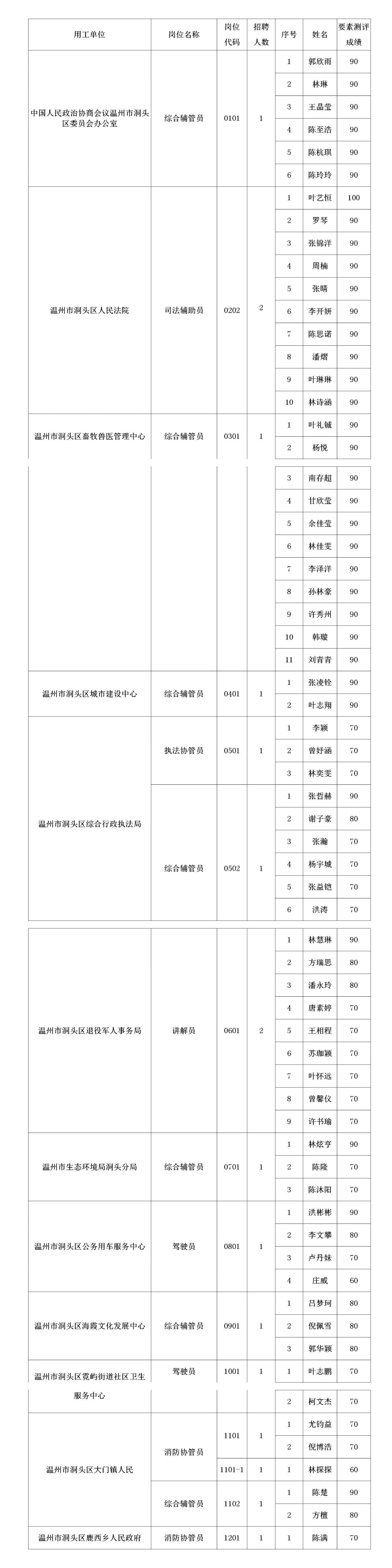 根据《2025年温州市洞头区机关事业单位(国企)第四期公开招聘编外用工公告》精神,现将入围面试人员名单公布如下: