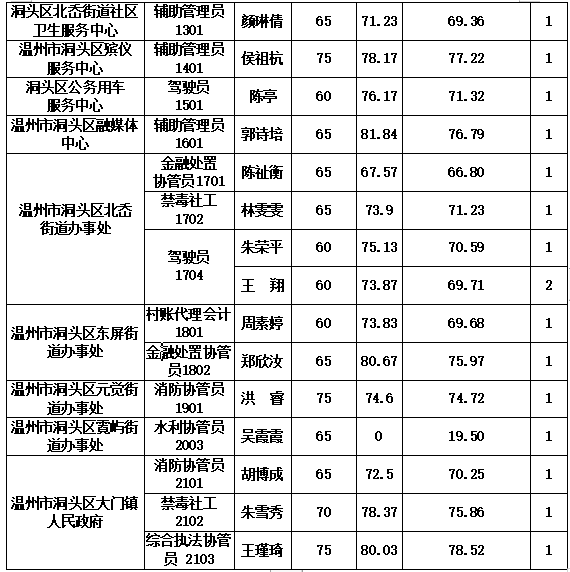 【入围体检】2022年温州市洞头区机关事业单位第二期公开招聘编外用工入围体检名单公布